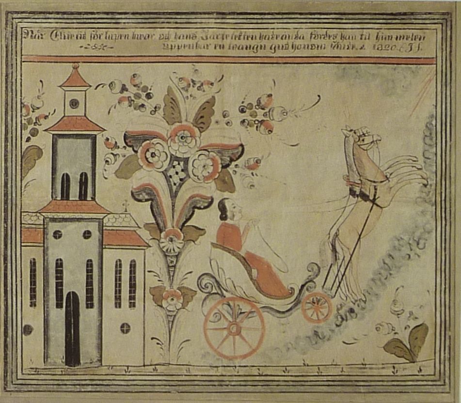 "Elie himmelsfärd" och "Jone havsfärd", liksom för övrigt den första i Fridolins lustgård, "Eden", har anknytning till de gamla dalmålningar, och dessa var i sin tur intermediala. Dalakonstnärerna omsatte de verbala framställningarna i Bibeln i sin målarkonst – och här måste vi också komma ihåg att de lärde sig av varandra och utvecklade olika målarskolor.